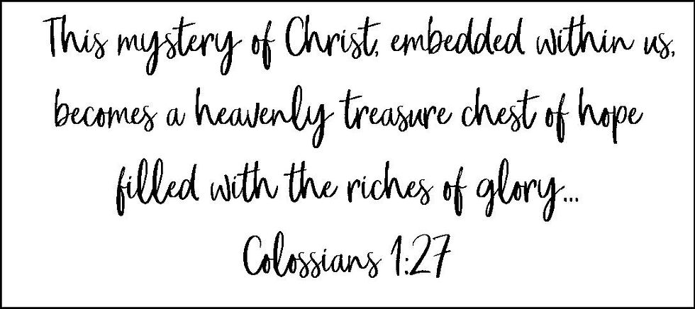 In fact, to God, each one of us is a treasure chest of beauty and glory, just waiting to be unlocked or unwrapped! And when we stay hidden, not only are we not displaying the beauty He is putting within us, but we are not adorning the rooms we've been called to. And we're not bringing the hope He planned for us to bring.
